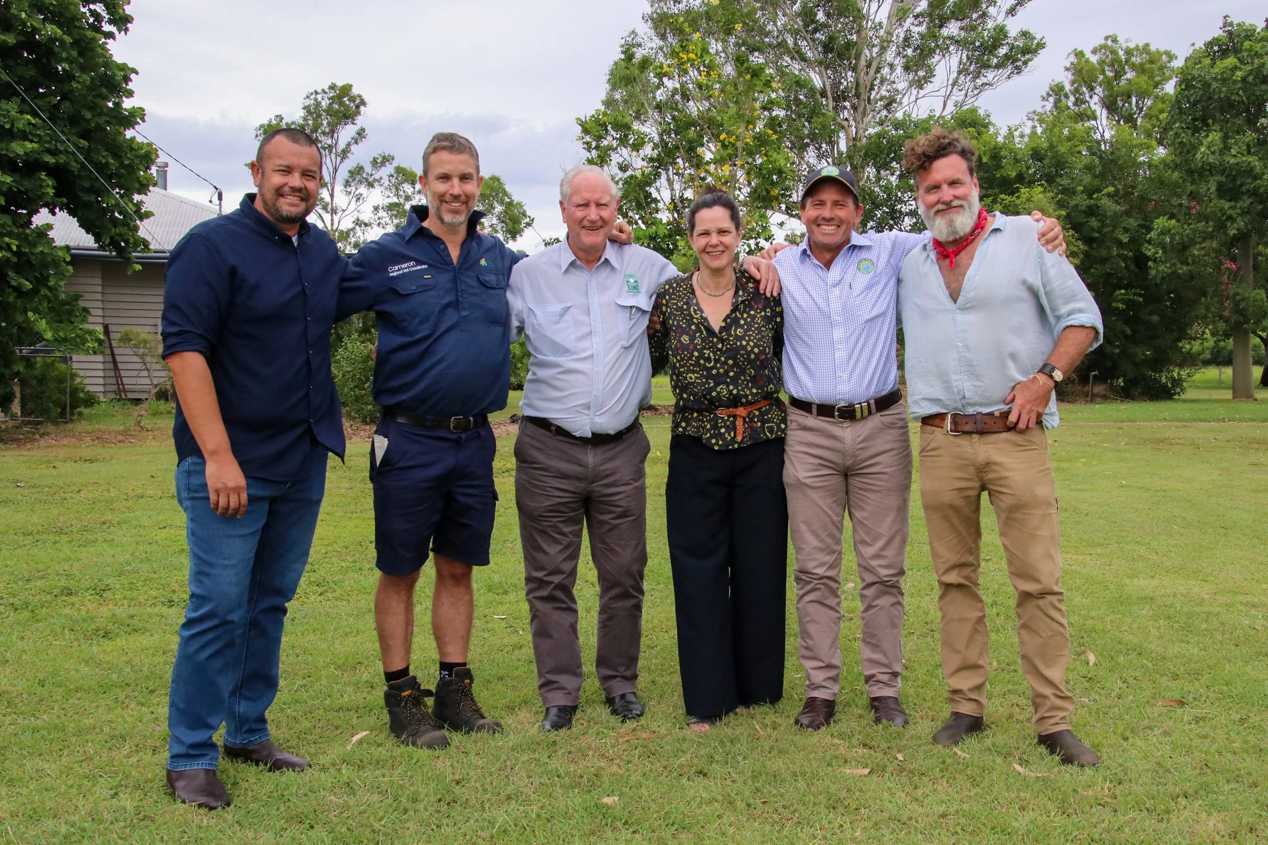 Pictured (L to R): Tom Espinoza (CEO, BMRG), Cameron Leckie (SQNNSW Innovation Hub), Dr Terry McCosker OAM (RCS), Nicole Masters (Integrity Soils), Stuart Andrews (Tarwyn Park Training), and Charlie Arnott (The Regenerative Journey).